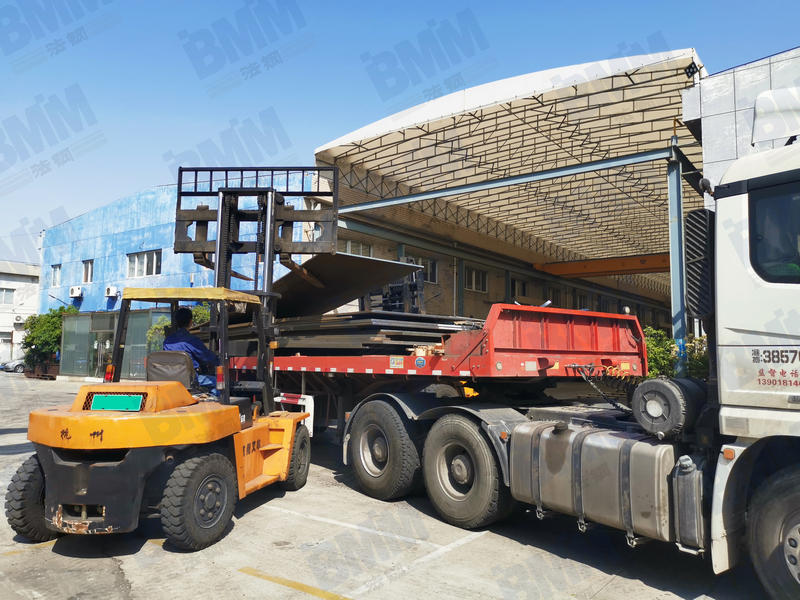 2020年4月,来自日本JFE钢铁公司的新一批EVERHARD系列耐磨钢板正在法钢仓库卸货。
